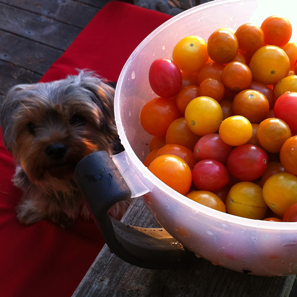 1-2 quarts of fresh in-season tomatoes, washed and cut in half (I love a nice variety)