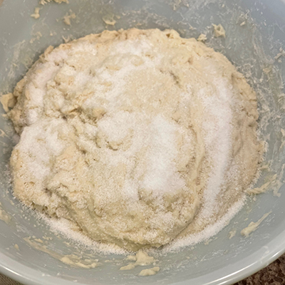 12:00 pm Mix dough until it forms a shaggy ball: