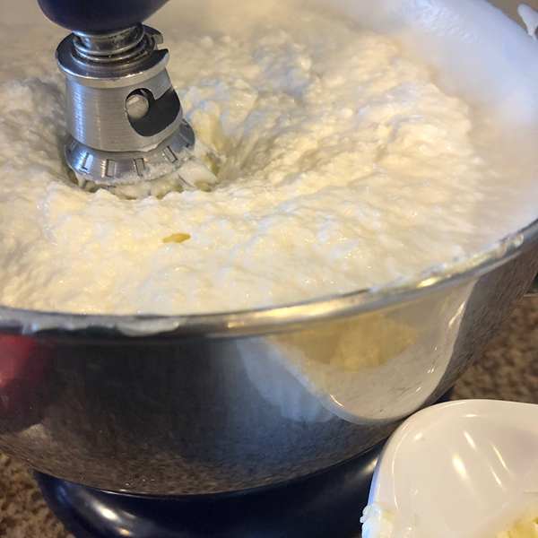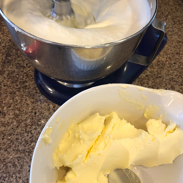 Next, still on medium speed, spoon the butter in one tablespoon at a time, allowing it to fully incorporate before adding the next spoonful. Be patient ~ this step can take 5-10 minutes. At some point, you are likely to panic because the mixture will look curdled and you’ll think you’ve ruined it. You haven’t! Keep mixing and before you can blink, it will shift before your eyes. You’re looking for a lush smooth texture. If the butter looks like it is separating or like it’s greasy, it could be because it’s too warm. ln that event, place the whole mixing bowl in the fridge for 10-15 minutes and continue mixing.