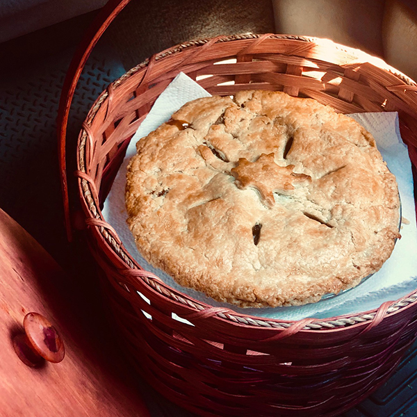 Put the pie on a baking sheet to catch any drips, place in the oven and bake for 30 minutes. Tent the pie with foil and continue to bake for one hour. Remove the foil and bake for 30 minutes or until the pie is evenly golden brown. (The total baking time is two hours). Remove the pie from the oven and allow to cool for at least one hour on a wire rack before slicing. The pie will still be warm, or you can cool it to room temperature, then slice and serve.
