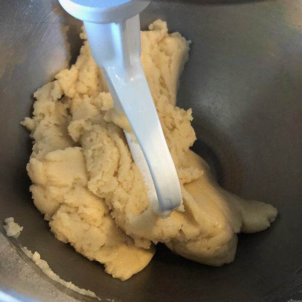 Pour this liquid into the batter slowly while the mixture is on low, stopping 3-4 times to wipe down the sides of the bowl (important). Once everything is evenly mixed, transfer the batter to a large bowl.