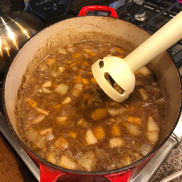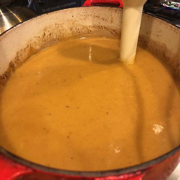 Puree in a blender, food processor or with an immersion blender. Add more stock as needed to thin to proper consistency. Taste soup and adjust the salt and pepper to taste.