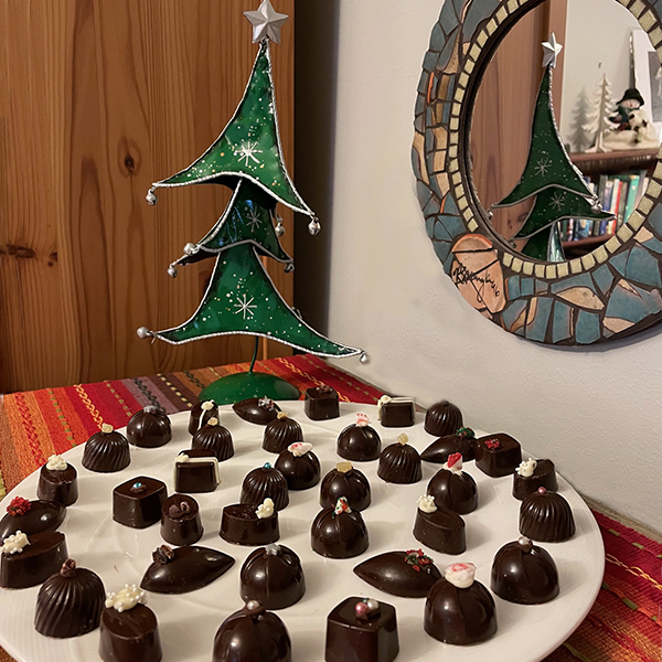 Working with chocolate is a tricky business because chocolate contains several crystals that each form or sets at a different temperature. Chocolate that has not been tempered will react to heat and humidity more dramatically or when stored for any length of time (this is what happens when chocolate goes white or “blooms”). It can also feel rough or tacky and have a chewy, cake-like texture.