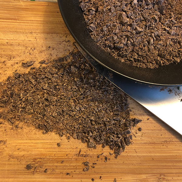 7-1/2 oz (220 g) semi-sweet or bittersweet dark chocolate, chopped fine (it doesn’t have to be couverture, but who can argue with the taste and texture of a good couverture chocolate?)
