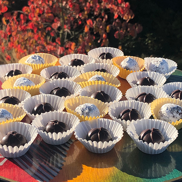 To remove the truffles from the molds, lay a piece of parchment paper down on the counter and turning the mold upside down, tap one horizontal edge firmly on the counter. Repeat as necessary until all the truffles have released. If the truffles don’t release, they are not finished setting. Give them more time and they will come out beautifully when ready.