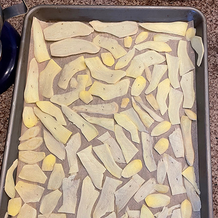 2 large ginger roots, peeled and sliced 1/8” thick (you can really do any quantity you want, but this yielded enough for my entire baking season)
