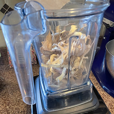 Put the ginger in a blender or a clean coffee grinder and process until finely ground, then store in an airtight jar.