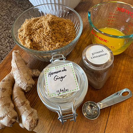 I highly recommend this recipe for homemade Ginger Snaps (baked for 15 minutes to get maximum crispness), or use your favorite version from the store.