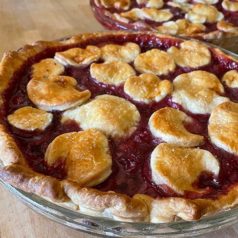Cherry pie filled with sweet cherries (fresh or frozen) is a summer favorite that my family adores. A touch of orange liqueur in the filling helps the cherries shine as they bubble in a rich, flaky crust. Check out my post on a leaf lard/butter crust for a way to send this pie over the top!