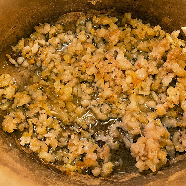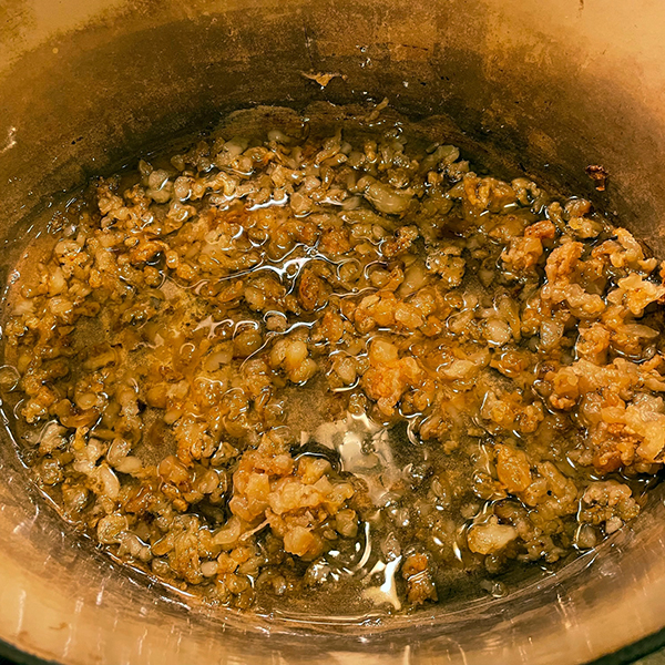 Note: If there are any meat nubbins, remove these so that you don’t carry any pork flavor forward.