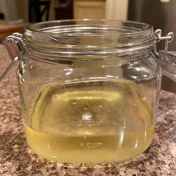 While it’s liquid, leaf lard has a golden yellow color, but once it cools completely the leaf lard will be a pure snow white. At this point, if you’ve done it right and patiently kept the temperature low, the leaf lard should have no porky taste. The texture will be creamy and spreadable, like very soft butter.