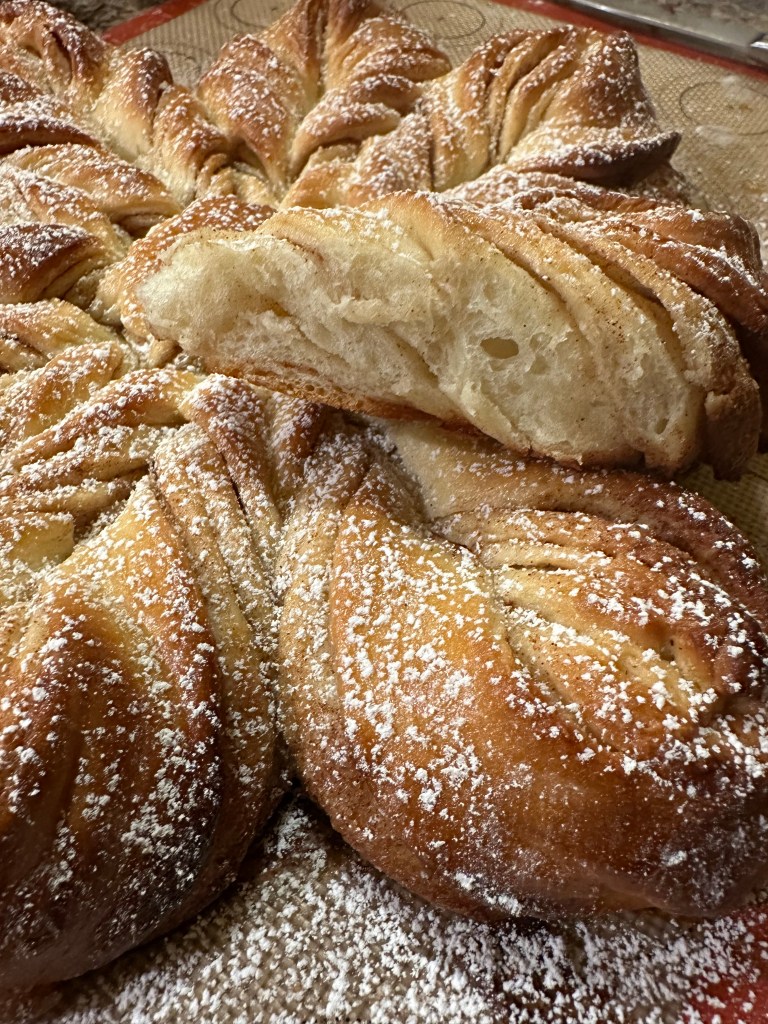 This gorgeous holiday bread is easy to do and impressive to look at! Rich and yeasted, the dough yields a tender, delicate pastry and is versatile enough to accommodate many filling options (suggestions included below). You’ll love this one!